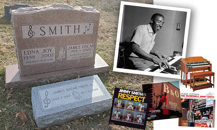 Jimmy Smith, as his headstone inscription boldly claims, was the “World’s Greatest Jazz Organist.” He popularized the Hammond B-3 organ and created a unifying link between jazz and the soul sound of the 60s. Cited as an inspiration and influence by dozens of jazz keyboardists, Jimmy was also a guiding force for rock keyboard players like Jon Lord, Keith Emerson and Brian Auger. Jimmy is sometimes called the “Father of Acid Jazz,” for his improvisational style. He continued to record and perform until his death in 2005 at the age of 76.