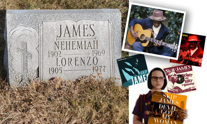 Skip James was a singer, songwriter and multi-instrumentalist, best known for his eerie, otherworldly songs featuring his open-tuned guitar and jarring falsetto vocals. Skip played traditionally Delta blues with a decidedly dark, somewhat evil, tone. His work, primarily released during the Depression, sold poorly and Skip faded into obscurity. In the 60s, with the help and interest of blues guitarist John Fahey, Skip enjoyed a rebirth of his career. He played folk festivals and toured the country. He has been hailed as “one of the seminal figures of the blues.” 32 years after his death, Skip’s signature song “Devil Got My Woman” was featured prominently in the film Ghost World where it mesmerized the character of Enid, as played by Thora Birch.
